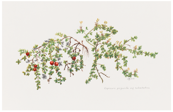 The introduced fauna destroyed plant environments threatening the habitat of much of the native fauna including the nesting areas of sea birds. This book and the illustrations are the result of an Australian Antarctic Arts Fellowship awarded to Maura Chamberlain.